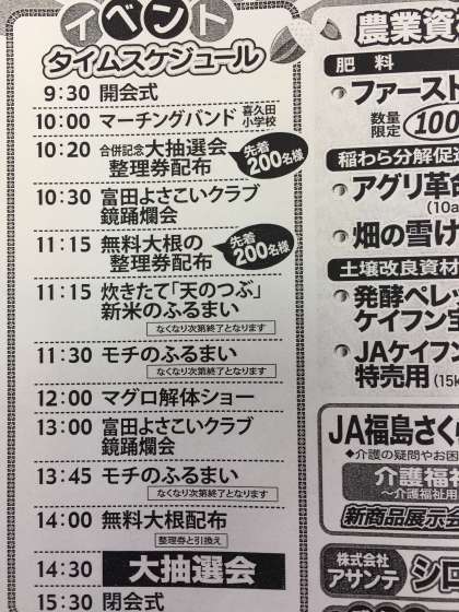 11月13日(日)にJAさくら郡山喜久田総合支店で行われます「JAまつり」に本校特設マーチング部が出演します。