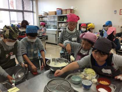 喜久田公民館主催の第6回こどもの広場「家庭科の時間」が公民館で行われました。