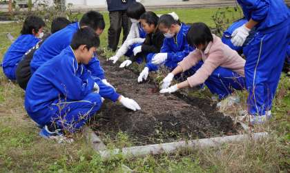 土を掘っての作業に、子どもたちは楽しそうに取り組んでいました。