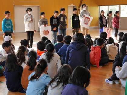 2校時目の休み時間に、集会委員会計画の上学年ゲーム集会が行われました。
