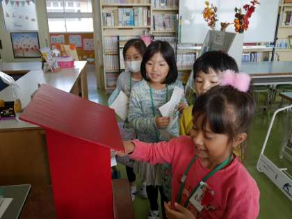 たくさんの子どもたちが「読書ゆうびん」を投函してました。