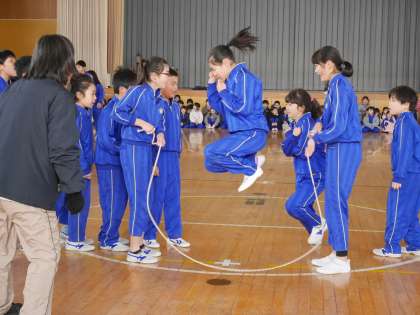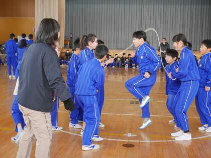 1学期は合唱、2学期はリズムダンス、3学期は長なわで、学級のまとまりを高めていきたいという担任の先生の思いが、子どもたちの姿に反映されていました。