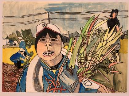 5年Sくんの作品「金の稲」、6年Wさんの作品「私の大好きな場所」です。