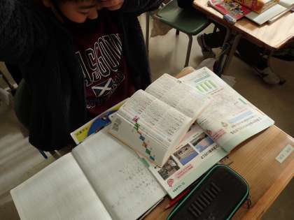 社会科の学習では、警察署の取り組みについて学習しました。「ふるさと郡山」を読んで、意味の分からない言葉を辞書で調べながら、まとめました。辞書を引いて調べる習慣がついてきています。