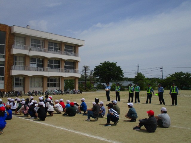 交番の井上さん、交通安全協会のみなさんにご指導いただきながら交通教室を行いました。自転車の乗り方、ヘルメットのかぶり方など細かいところまで、ていねいに教えていただきました。