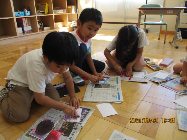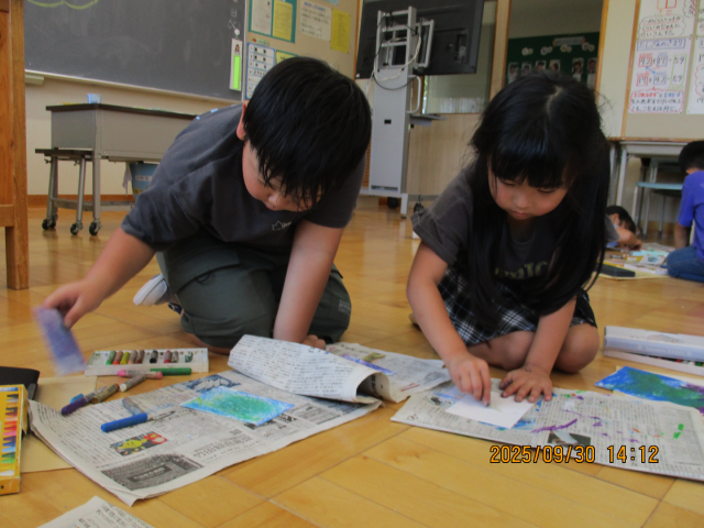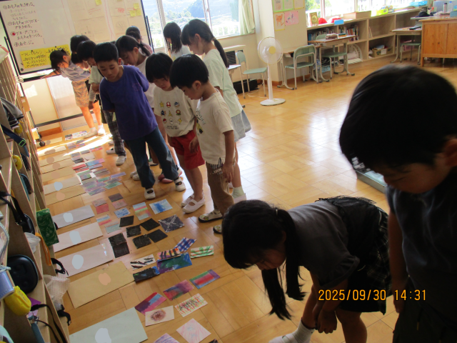「これ、きれいだね」「どうやってかいたの?すごい」と、お互いのよさをたくさん見つける姿が見られました。