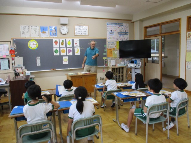 今日はAETと「色」「動物」「フルーツ」の復習をしました。「これはなに?」ゲームでは、先生も参加して大盛り上がり。