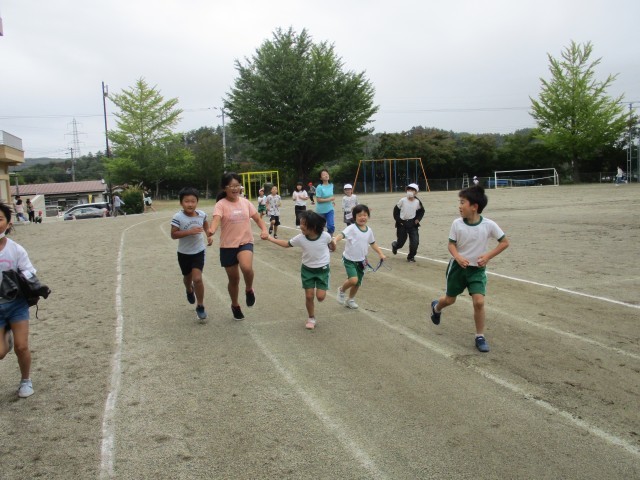 英語の学習のあとは、マラソンタイム。上級生と一緒になかよく校庭を走ります。今日も元気いっぱい過ごしました。