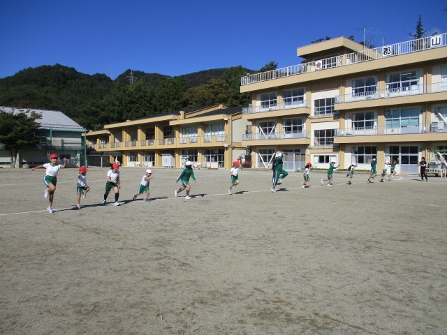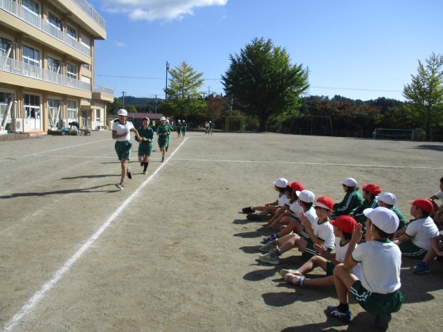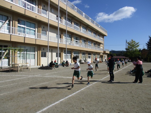来週は、いよいよマラソン記録会です。今日は、高学年のお兄さんお姉さんと一緒に体育の授業をすることになり、大喜びの1,2年生。大きい学年と肩を並べて、一生懸命運動しました。そのあと、高学年男子が、1,2年生と一緒に走ってくれました。おかげで、好タイム続出。高学年のみなさんの力強い走りに、1,2年生のかわいい声の応援が校庭いっぱいに響きました。高学年のみなさん、今日は本当にありがとうございました。そして、お疲れさまでした。