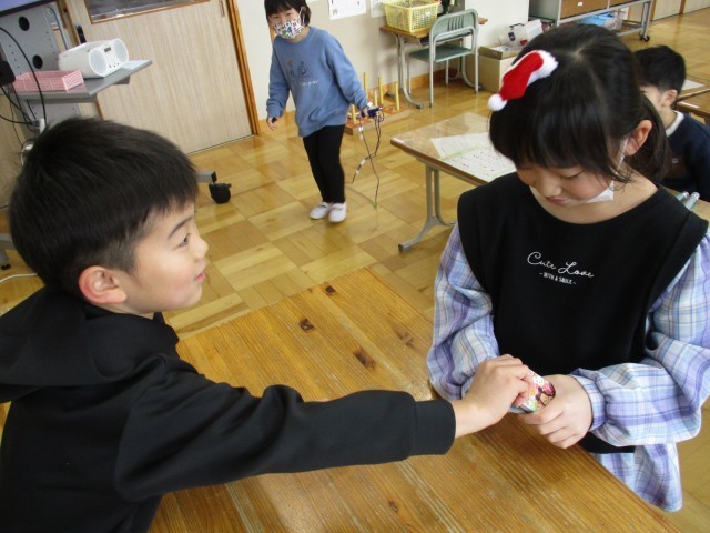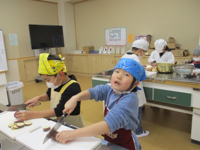 今日は、先月から学活の授業で話し合ってきた「おたのしみかいをしよう」の日でした。得意なことや手品を披露すると、教室は大盛り上がり。子どもたちの考えたフルーツバスケットの罰ゲームは、からだで「自分の名前を書く」です。ここでも笑いが止まりません。5校時は、待ちに待った「おいもパーティ」。包丁で、ていねいにおいもを切ることができました。食べたあとの後片付けもとっても上手。てきぱき、時間通りにフィニッシュ。3学期のお楽しみ会は何をしようと、今からわくわくの1年生です。明日は終業式。冬休み中も、たくさんお手伝いをしてください。