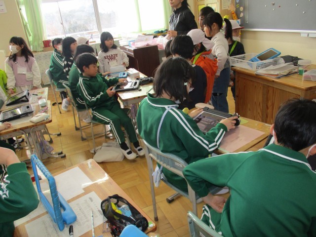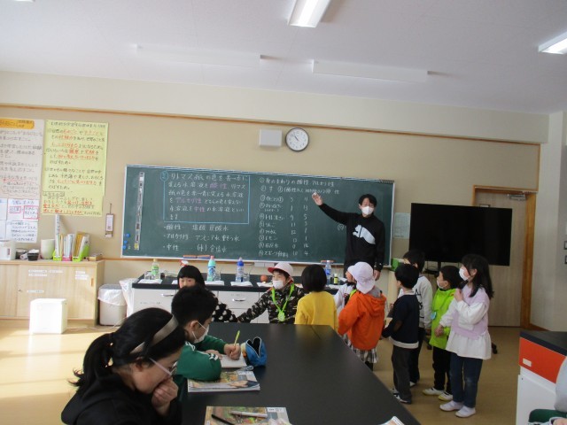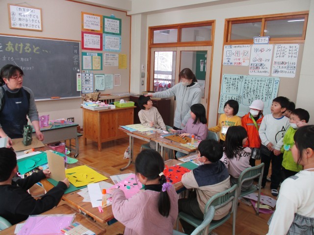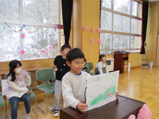 今日は、熱海保育所のお友達が4人遊びに来ました。今日のために、いろいろ準備をしてきた1年生は、お友達が来る前からドキドキ。あいさつや自己紹介をして、校舎を案内しました。各教室や特別教室での上級生の授業の様子を見せていただきました。いろんな教室があって、びっくり。長い廊下を歩き、大喜び。たくさんのお友達が、一生懸命学習に取り組む姿を見て、保育所の先生も感心していました。1年生は、紙芝居を披露したり、一緒におはじきや縄跳び、お絵描きなどをして「おもてなし」しました。今日一日で、距離がぐっと縮まり、4月が待ち遠しい1年生。お兄さん、お姉さんらしい姿に先生方も、思わずにっこりです。