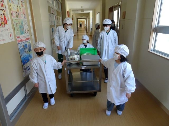 また,今週から1年生も給食が始まったので,その準備や片付けも6年生といっしょにがんばっています。