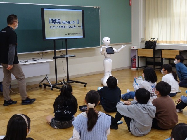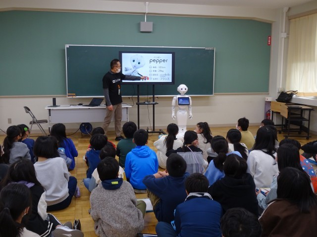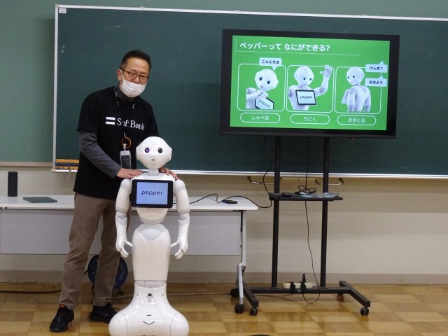 12月2日(火)には、ソフトバンクの社員さんが来てくださり、ペッパーくんを使った授業を行いました。