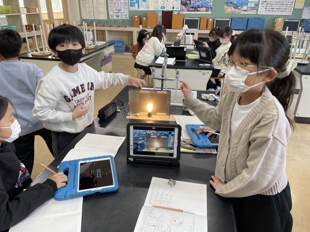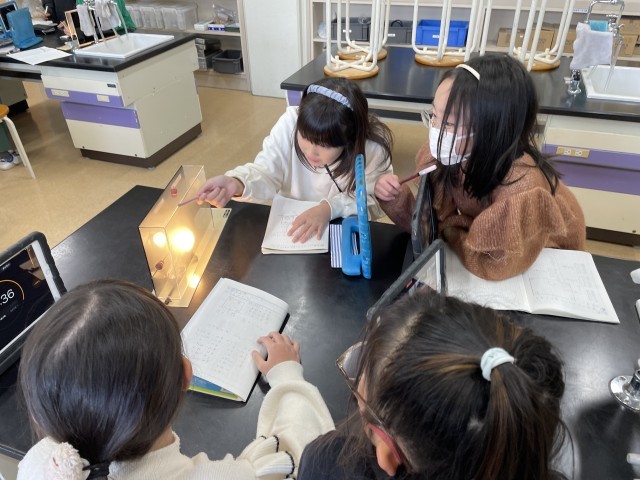 子どもたちは、模型をもとに、あたたまった空気がどう動くのか、そしてどのように空間があたたまっていくのかを学びました。線香のけむりと、模型の中の温度計を見ながら、グループでとてもよい関わりをして学ぶ姿が印象的でした。