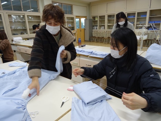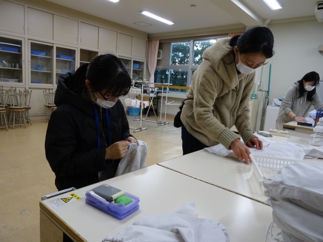 12月10日(水)に厚生員会の方々が、給食の白衣の修繕を行ってくださいました。