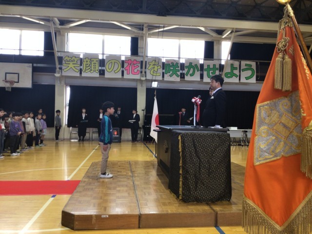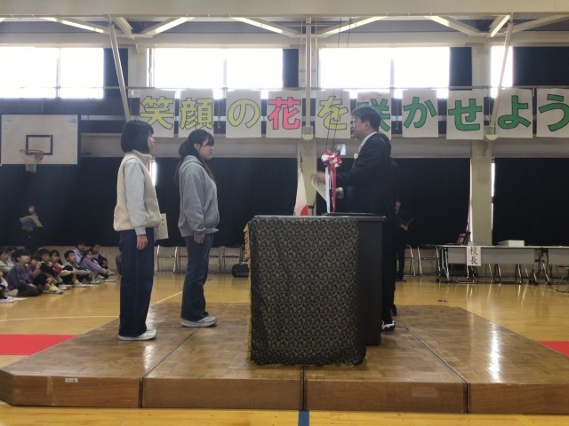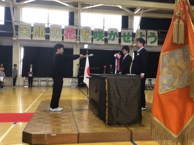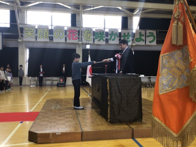 各学年の代表が、堂々と返事をして、凛々しい表情で校長先生から修了証書を受け取りました。