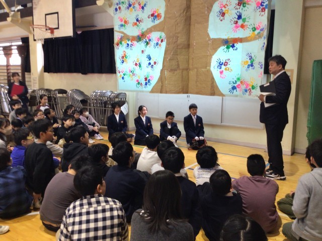 会の後には、校長先生から、次の芳山小を引っ張っていく5年生に熱いお話、そして激励をいただきました。