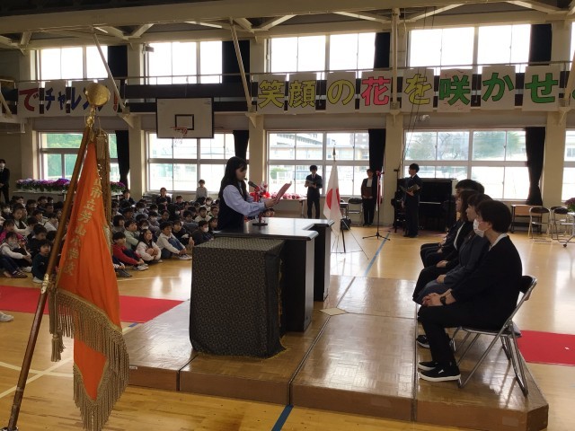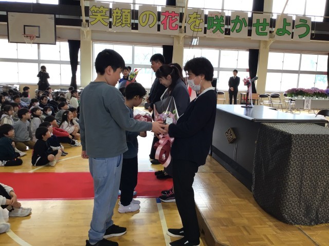 5年生の代表児童からは、一人ひとりの先生との思い出、そして激励の言葉を発表しました。感情がこもった、素晴らしい送る言葉でした。