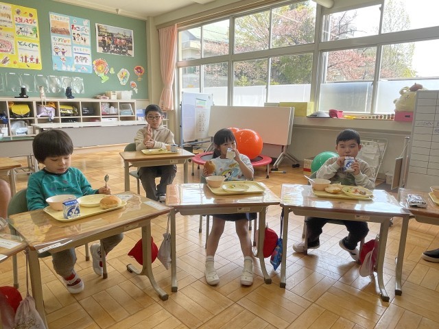 先週から、1年生の給食が始まっています。