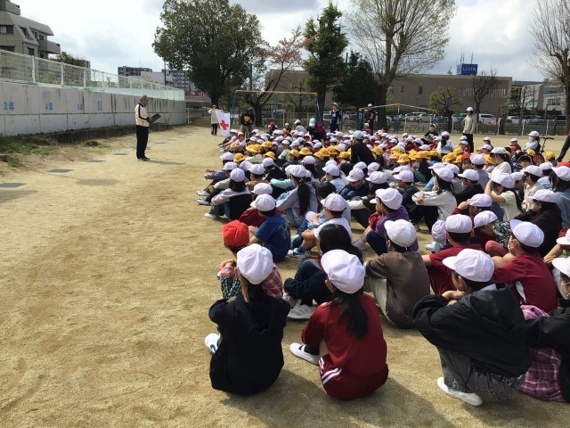 1年生のみなさんは入学してまだ2週目にもかかわらず、上手に整列し、校庭に避難。
