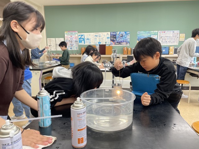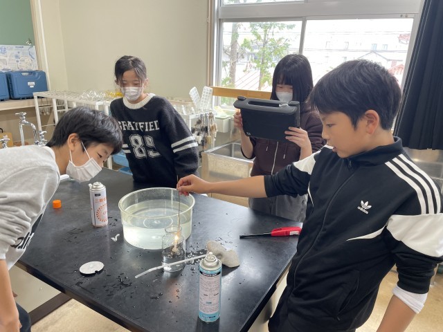 ろうそくの炎の反応に、子どもたちは、驚きと発見がありました。