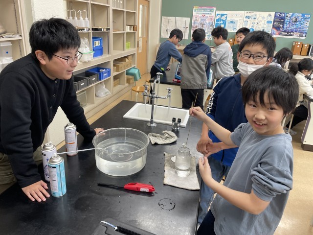 「みて、こんなにろうそくが消費された!酸素って、すごいなぁ」