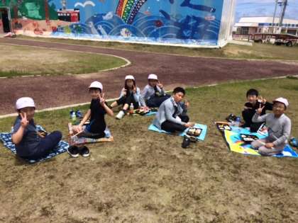 道に迷ったり、歩きながら仲間とはぐれてしまったり、いくつかトラブルがありましたが、ゴールの四倉港につきました。ハンバーグ弁当です。たくさん歩いたのでおいしい!