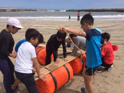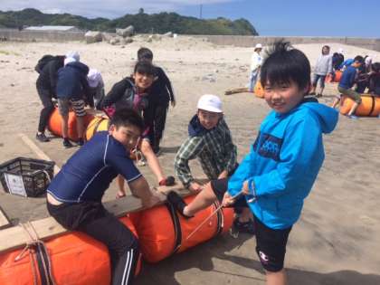 いかだ作り奮闘中