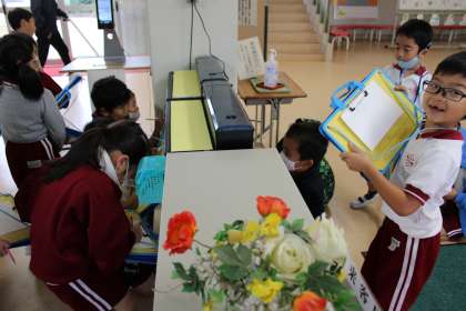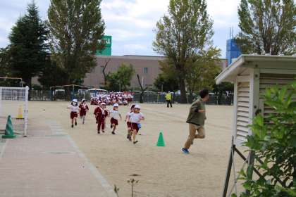 1年生は校庭を元気に走っています。マラソンフェスティバルに向けて練習開始?1年2組は、生き物をスケッチです。メダカ組と植物班?
