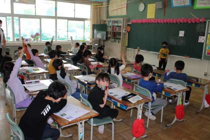 本日県中教育事務所長訪問がありました。全クラスの子どもたちの様子を参観いただきました。1年1組は国語、1年2組は算数、たんぽぽ学級は自立活動の様子です。