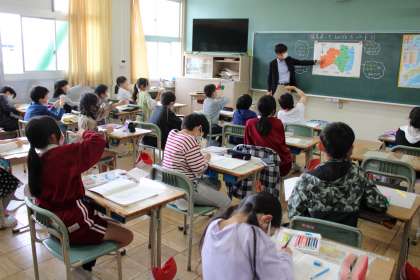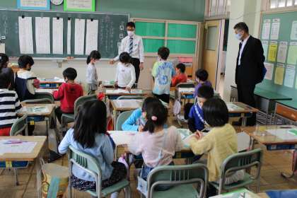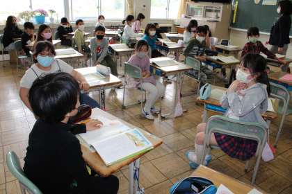 2年1組は国語、4年1組は社会、4年2組は道徳の様子です。