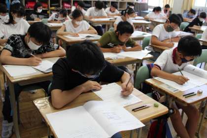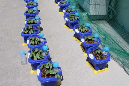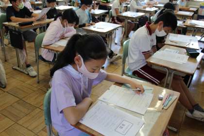 6年生は全国学力学習調査の経年変化調査に協力しています。1年1組のベランダにあるアサガオです。だいぶ成長してきました。