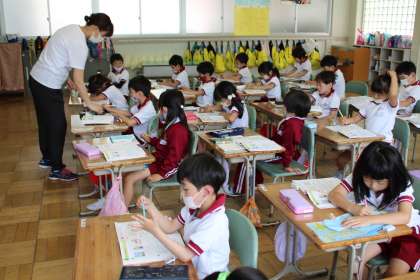 朝一できちんと揃った下駄箱を見るとなんかいい気持ちになります。揃えようとする子どもたちの気持ちがいいですね。1年1組は算数です。先生に丸をもらっています。