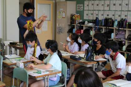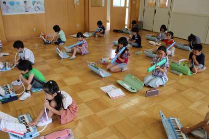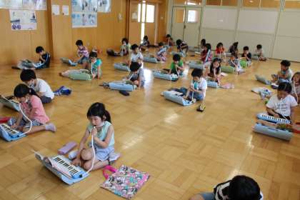 2年1組は音楽です。鍵盤の演奏の仕方上手になってきました。5年2組は算数です。難問に挑戦中、友達と考えていますが、先生からもヒント?
