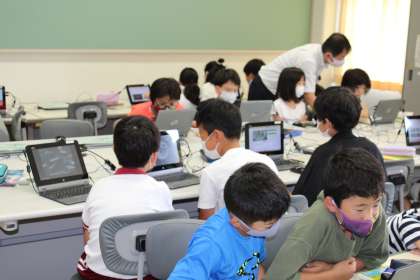 すみたん学級は、合同でスポーツテスト、シャトルランに挑戦です。何回できたかな?5年1組は理科です。パソコン室でメダカの卵等について映像で確認しています。3年1組は、社会です。郡山市の公共施設についてまとめています。