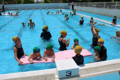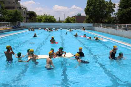 本日は1年1組と6年1組が一緒にプールに入りました.1年生にとって初めての学校のプールです。天気にも恵まれ、6年生にもお世話になり、楽しく活動ができたようです。6年生も1年生の時を思い出し、一生懸命に1年生のお世話をすることができました。