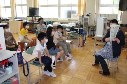 本日はお話ランプの皆さんによる上学年対象の読み聞かせでした。お話の世界に引き込まれていく子どもたち、今日はどんなお話か、いつも楽しみにしています。