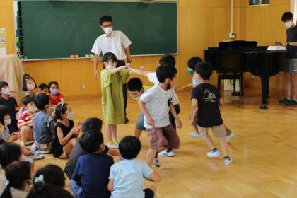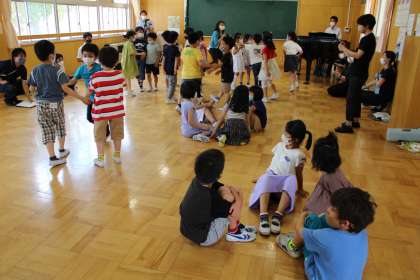 2年1組は菊地啓先生が音楽の授業研究でした。カッコウの曲をもとに、歌詞からイメージした思いを鍵盤を使ってグループごとに工夫して演奏する内容でした。どの子も楽しそうに活動ができました。