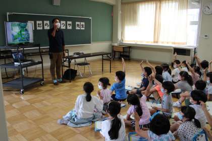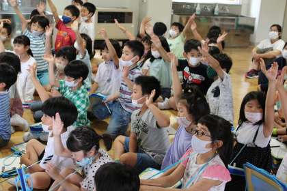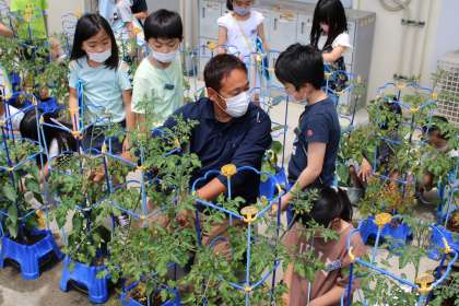 2年生は、学年行事の一環で、野菜ソムリエ、食育指導士でもあり自らも須賀川市で農家を経営している設楽哲也氏に来校いただき、コメや野菜作りについて、いろいろと教えていただきました。2年生も自分で選んだ野菜を育てており、たくさん質問が出ていました。最後は外に出て、育てている野菜の様子を見て頂きアドバイスしてもらいました。