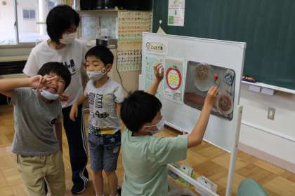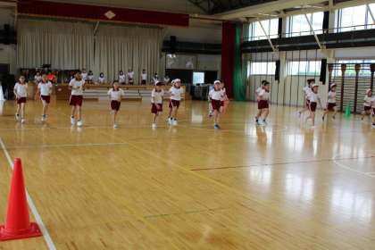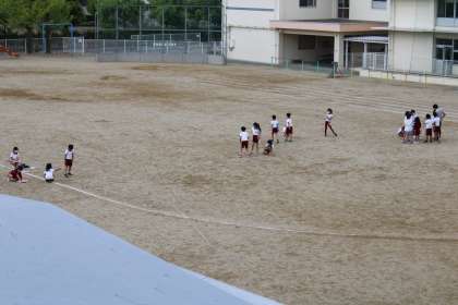 3年1組は校庭で算数の学習です。すみれ学級は本日の給食の確認です。5年生はスポーツテストシャトルランに挑戦中です。