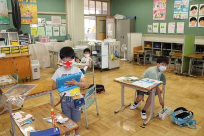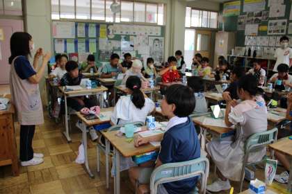 6年2組は、保健指導「歯の磨き方」です。さすが6年生になると歯の磨き方も上手になったかな?すみれ学級は、図工です。学年別で、変身?と心の模様を描いています。