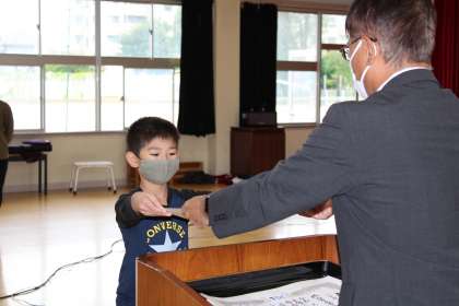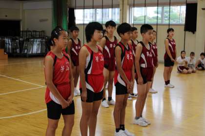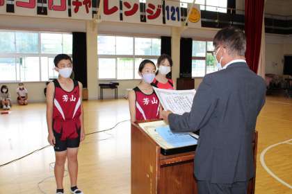理科作品展、合奏部の活躍の賞状伝達も行いました。最後は来週行われる陸上競技交歓会の選手壮行会の様子です。