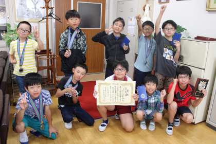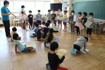 朝一で、ソフトボールスポ少のメンバーが大会で準優勝した報告に来てくれました。それぞれの胸には銀メダルが輝き、嬉しそうでした。おめでとう!!1年1組と2組は、かおフェスの練習の様子です。