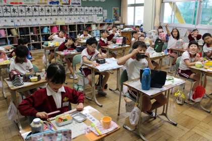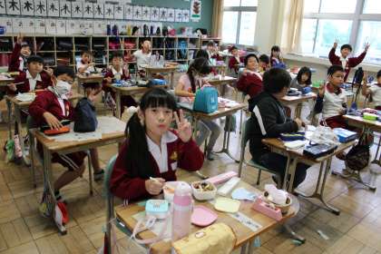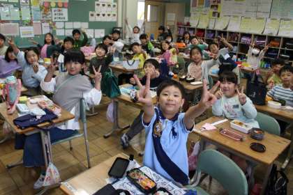 お弁当タイム、2年2組、3年2組、3年1組の様子です。