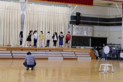 5年生は、グループに分かれてかおフェスの練習中です。3年生もかおフェスの練習中です。すみたん学級は、交流に行っているお友達以外で、マラフェスの練習です。
