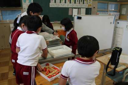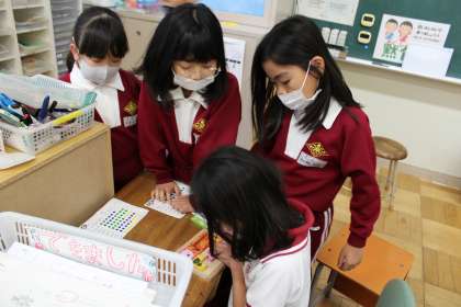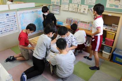 休み時間、たんぽぽ学級にたくさんの子が遊びに来ています。