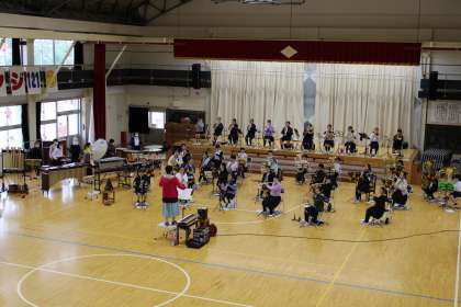 本日合奏部は県大会です。学校で練習中です。結果は金賞・優良賞受賞、お見事全国大会出場です。11月6日に千葉県で行われます。おめでとう!!