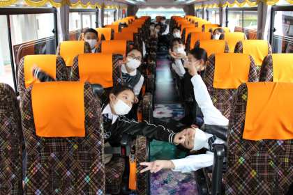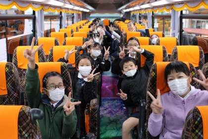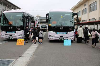 安積黎明高校をお借りして、ここからバス2台で福島市音楽堂へ向かいました。