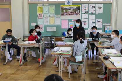 3年生、テスト頑張ったようで素敵な笑顔です。3年2組は道徳の様子です。5年生はかおフェスの練習中です。