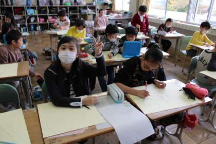 いよいよ今週末には、かおりのフェスティバルがあります。各学年、いよいよ追い込みです。入念に仕上げに向かっています。4年生は、かおフェスの練習中です。4年2組は図工で絵に挑戦中です。